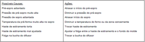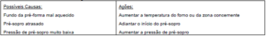 Condição de superaquecimento da pré-forma: deve-se verificar se a pré-forma apresenta manchas esbranquiçadas. Se positivo, o problema é aquecimento excessivo.